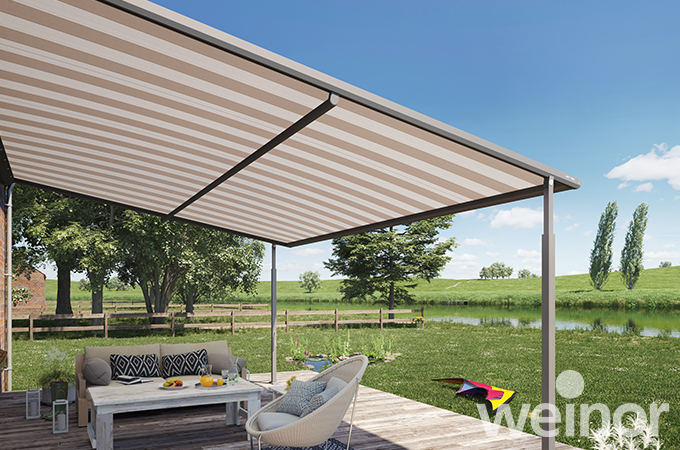 Ob Sonne oder Regen – die PLAZA VIVA schützt Sie sicher auf Ihrer Terrasse. Und wenn an einem sonnigen Tag der Wind auffrischt, ist das ab sofort kein Grund mehr, das Tuch einzufahren. Der Pergola-Markise können selbst Böen bis zur Windstärke 6 nichts anhaben.