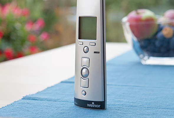 Statt kabelgebundenem Schalter lassen sich viele weinor-Produkte auch per Fernbedienung steuern: E-Antrieb für das Ein- und Ausfahren des Markisentuches oder des Volants, LED-Lichtleisten an den Trägern oder Pfosten des Terrassendaches oder integrierte LED-Spots im Ausfallprofil der Markise sowie das effektive Heizsystem TEMPURA. Die Übertragung des Funksignals erfolgt über eine geschützte Frequenz, so dass Störungen durch Telefon- oder WLAN-Signale ausgeschlossen sind. Die Steuerung funktioniert selbst durch dicke Wände oder Fassadendämmungen hindurch zuverlässig. Die Bedienung ist intuitiv und einfach. Wir bieten Ihnen zur Steuerung das weinor-eigene Produkt BiConnect oder alternativ die Funkbedienung Situo von Somfy.